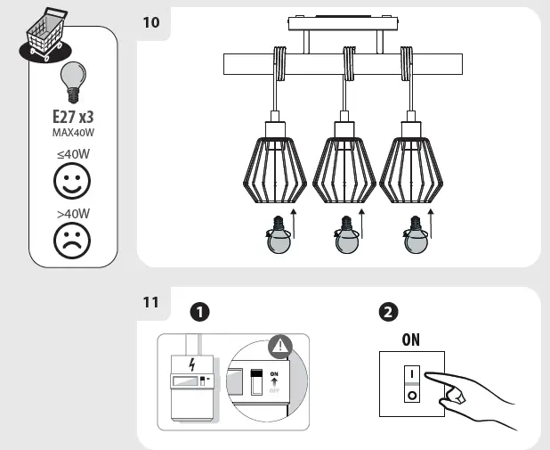| Rated wattage / Lamp socket | E27, 3x Max. 40W |