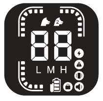 L M H (3 levels vibration adjustable and 0-99 shock