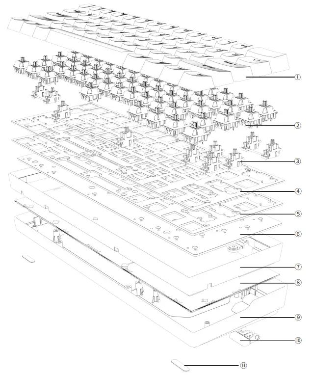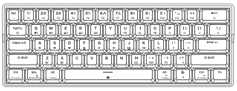 | FN+Tab= Restore the keyboard to factory settings(Press 5 seconds | ||