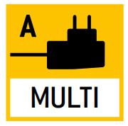 with universal input and optional input socket adapters for A) EU, CH, GB; B) EU, CH, GB, USA; C) EU, CH, GB, USA, AUS