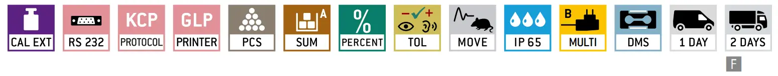 - Searching and remote control of the balance using external control devices or computers with the KERN Communication Protocol (KCP).