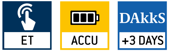 - DAkkS calibration certificates in the following languages DE, EN, FR, IT, ES, NL, PL