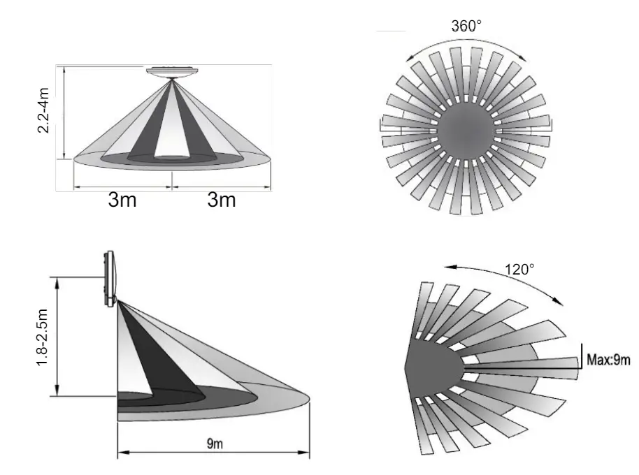 Voltage 110 – 240 V / AC Detection angle Ceiling 360° Wall 120°
