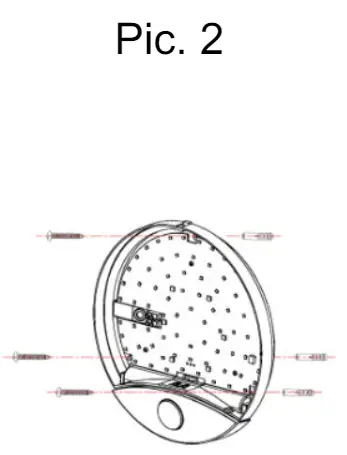 3. Thread the supply wire through the conduit in the luminaire. Then screw the luminaire using three screws into the pre-drilled holes equipped with wall plugs (pic. 2).
