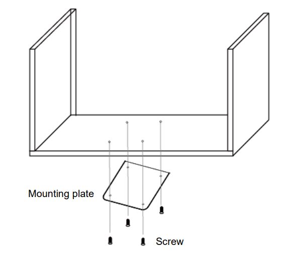 Decide the location for the device installation. Use the drill hole paper template to drill the indicating holes. Screw on and tightened the plastic plate to the cabinet/shelf correctly.