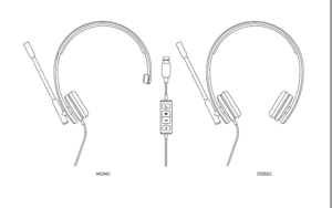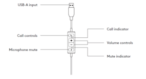 - Headset with In-line controller and USB-A connector