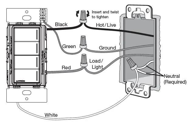 3.  When no “grounding meansâ exists within the wall box, the NEC® 2015, Article 404.9 allows a dimmer without a grounding connection to be installed as a replacement, as long as a plastic, noncombustible wallplate is used. For this type of installation, twist a wire connector onto the green ground wire or remove the green ground wire on the dimmer and use an ap pro pri ate wallplate such as Claro or satin finish series wallplates by Lutron.