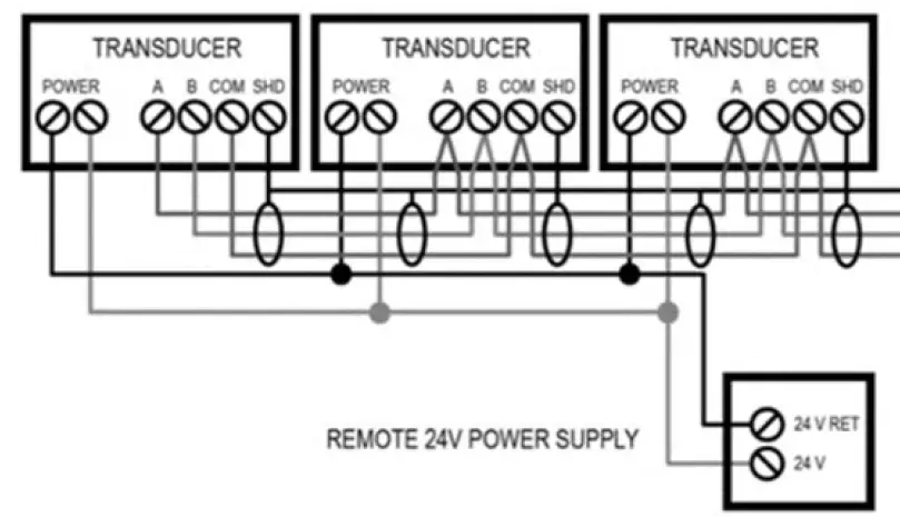 - Note: It is recommended to always use twisted wires to reduce noise and allow for reliable data communication over greater distances. Use at least 3-conductor wire with one twisted pair providing a pair for signal (A & B) and Common (COM) connections.
