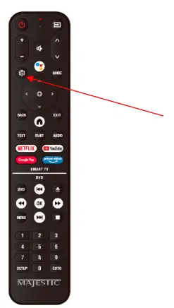 Step 1 Make sure you are in TV Mode – then Push the settings (looks like a Wheel or COG) button on the remote control
