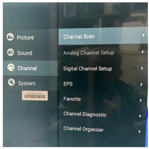 Step 2 Select Channel, push the centre ok button or right arrow key