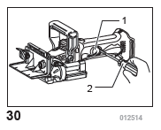 - Fig.30 Use a screwdriver to remove the brush holder caps. Take out the worn carbon brushes, insert the new ones and secure the brush holder caps.