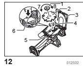 - Be sure to identify safety measures to protect the operator that are based on an estimation of exposure in the actual conditions of use (taking account of all parts of the operating cycle such as the times when the tool is switched off and when it is running idle in addition to the trigger time).