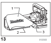 - When the dust bag is about half full, switch off and remove the battery cartridge. Remove the dust bag from the tool and pull the bag’s fastener out. Empty the dust bag by tapping it lightly to remove as much of the dust as possible.