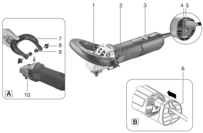 - Adjust the bar auxiliary handle (7) to the required angle.