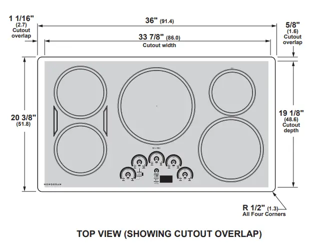 more details, refer to the installation instructions for this product on Monogram.com. Dimensions in parentheses are in centimeters unless otherwise noted.