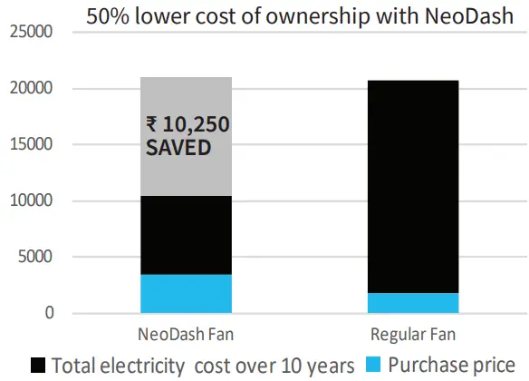 Savings calculation | Regular Fan | NeoDash Fan | UP TO 60% ENERGY SAVING COMPARED TO REGULAR FAN |