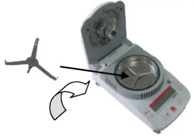 - Optional Sample Pan Handler – Slide an empty sample pan under the pan handler, then place over the pan support.