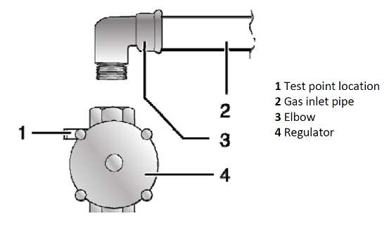 Fit the supplied NG regulator to the elbow fitting “A” using two spanners (note orientation of the NG regulator gas flow).