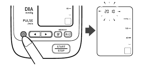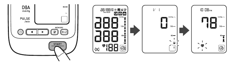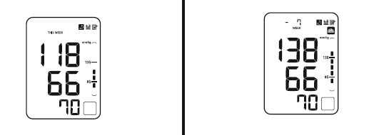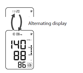 • When the cuff is applied correctly,  is displayed while taking a measurement or using the memory function. If the cuff is not applied correctly,  is displayed.