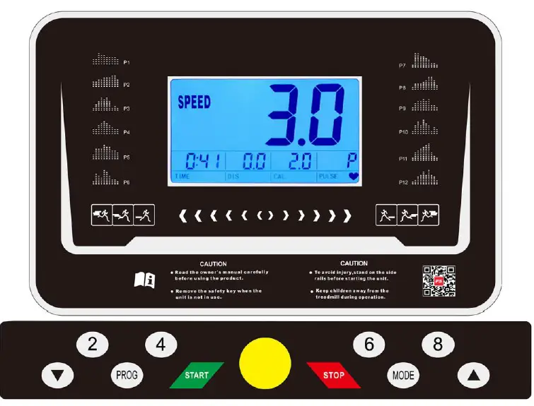 ● Modes: Manual, Countdown: Time, Distance, Calorie. Auto (12 Programs)