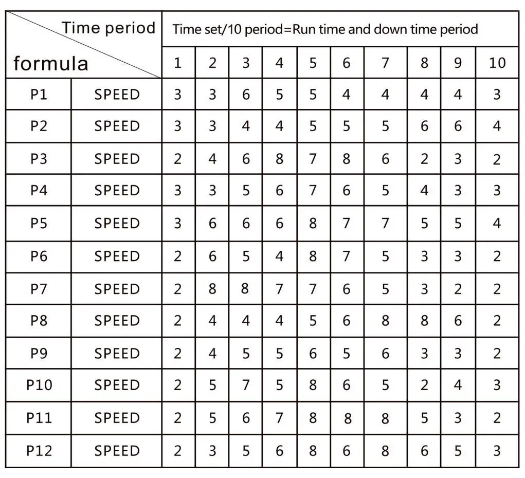 Press the PROGRAM button to enter into the auto mode. It will default into the P1 program with 10 minutes duration. Press PROGRAM again to get to P2 program and so on. When the time display is flashing, you can adjust for a range of 5-45 minutes.