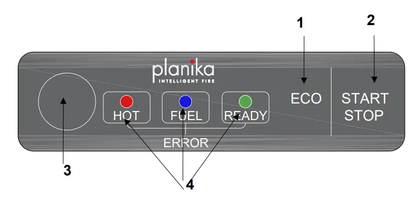 When the flame is ignited, press ECO to lower the flame (two sound signals). Press ECO again to increase the flame height (one sound signal).