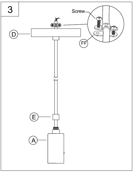 MINIMUM of wire past the canopy (D) to allow for easy connections in step 4. - Choose the canopy (D) finish you like and then pass the wire through the cord bushing (E), out of the canopy assembly (D).