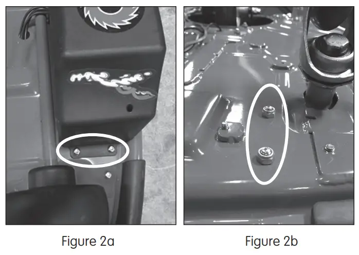Using a 5 mm Allen wrench and a 10 mm wrench, loosen the two (2) hex bolts on the side of the battery cover (Figure 2a) and the two (2) locknuts, located underneath the unit (Figure 2b)