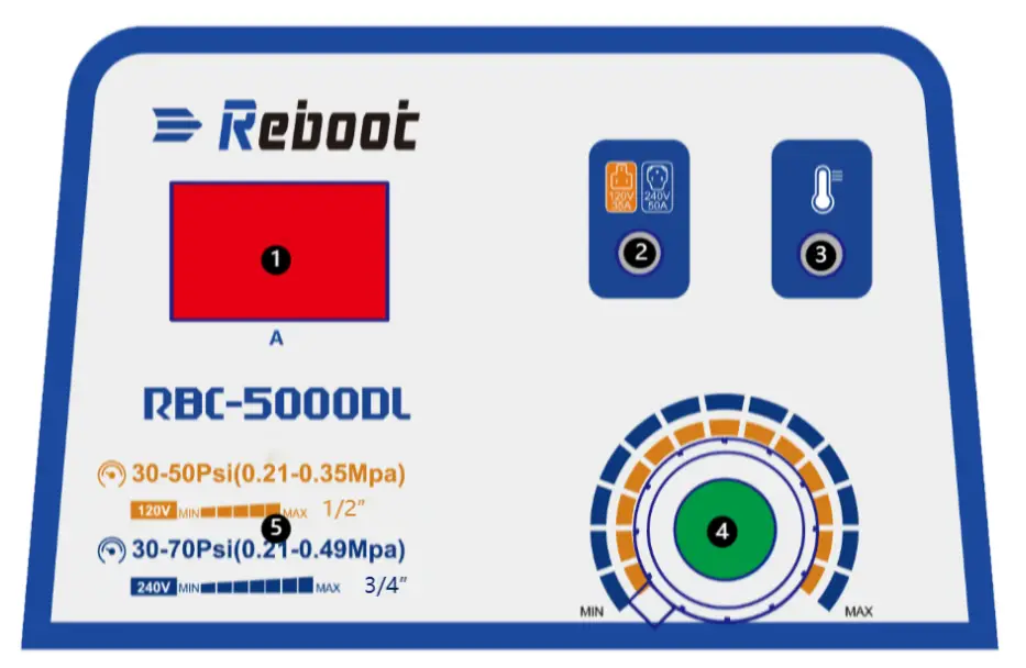 | 5 | Recommended selection range of air pressure: when 120V is input, it is recommended to adjust the input air pressure at 30-50 PSI; When 240V is input, it is recommended to adjust the input air pressure at 30-70 PSI. |