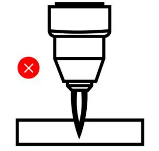 | Keep the torch vertical at the edge of the workpiece. Keep your wrist steady and ready to start cutting | Pull the trigger to start the arc , The cutting arc will initiate when the torch tip is close enough to the work Piece. Start cutting on the edge until the Arc has cut completely through. | fast speed will lead to incomplete cutting, and arc blowback is easy to damage the device. Too slow speed will lead to excessive scum and cutting gap. |