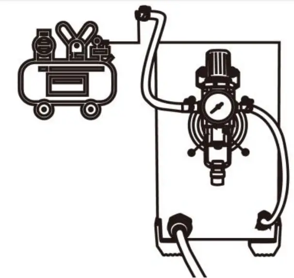 - Turn on the air valve switch, lift up the pressure regulating knob, adjust the air pressure to the specified air pressure (turn to “+” to increase the air pressure, and to “-” to decrease the air pressure), then Press down the pressure regulating knob;