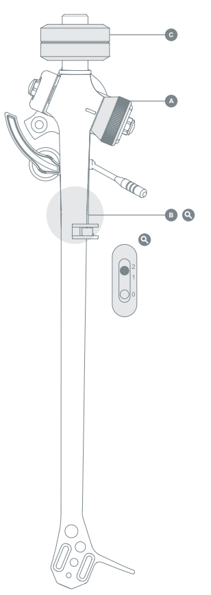 Place the balance weight (C) on to the balance weight shaft. With the stylus guard removed, position the cartridge above the lead-in groove of an LP. Whilst supporting the headshell, carefully push the weight further up the shaft until the stylus is floating just 1mm clear of the record.