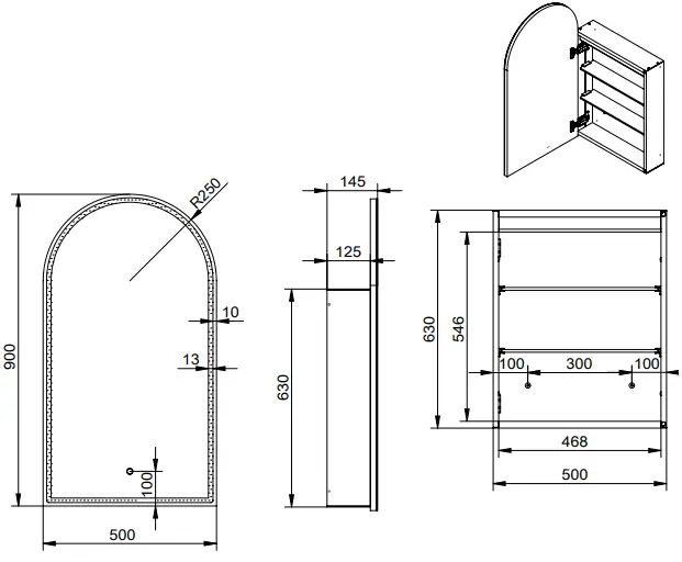 REMER BLANCA 500 Arch Shaving Cabinet with LED Light and Demister Instruction Manual