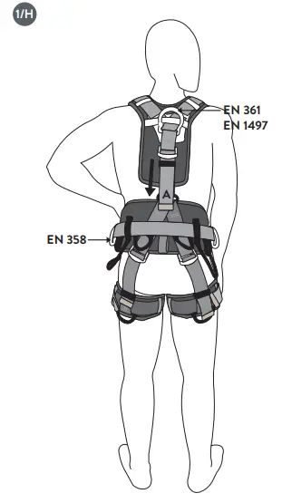 1. Only the rear attachment point is approved to EN 1497 (rescue).