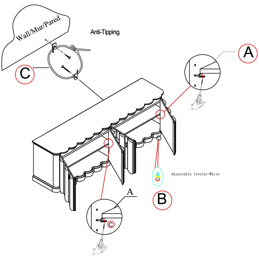 Roseto HMIF69676ANTWH Celina 84 Wide 4 Door Rubberwood Credenza Installation Guide