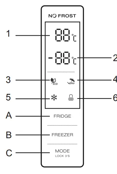 - Defrost LED: during defrosting, the LED is on; When is stops defrosting, the LED is off, During the delay display of defrost, the LED flashes.