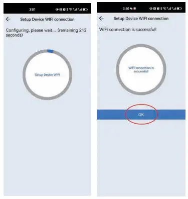 - When the camera enters the network configuration setting, there will be a “beep” sound. After waiting for a while, there will be two “beep beep” sounds, indicating that the camera has been successfully set up for networking. Click “OK” to proceed
