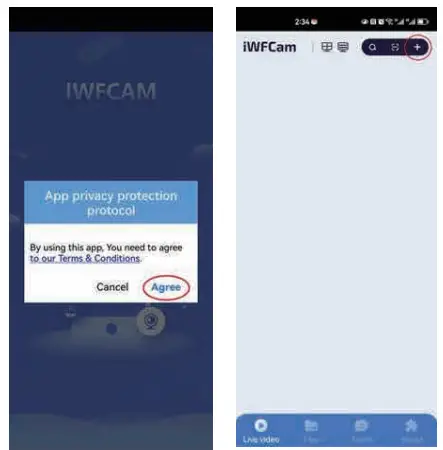 - After opening the app and entering it,Please click”agree” [user agreement and privacy policy] and allow the iWFCam app to access your pictures and video, or it may lead to fail to connect to
