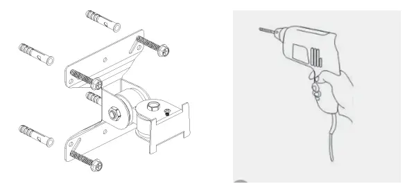 - Place four anchors into the drilled holes, then place the larger wall screws into the bracket’s grooves and use the iron wrench provided with the product to tighten the screws and secure the