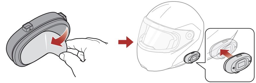 - Attach the speakers to the helmet using the hook and loop fasteners.