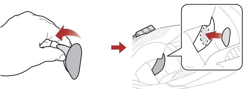 - Attach the speakers to the hook and loop fasteners for speakers inside the helmet.