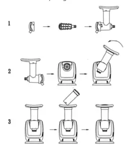 - Insert the tip of the grinder into the housing. Turn counterclockwise to lock the chute assembly in place.