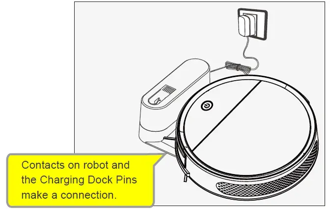 Charging Contacts on robot and the Charging Dock Pins make a connection.