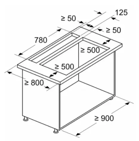 Standard: with worktop divider between downdraft and hob Combination with gas hob is not possible