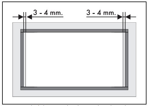 2. Press lightly to make the seal stick to the edge around the hole in the worktop. The front and rear sides of the seal must be flush with the hole.