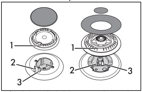 • Make sure that the flame spreader crowns are correctly positioned in their housings with their respective burner caps.