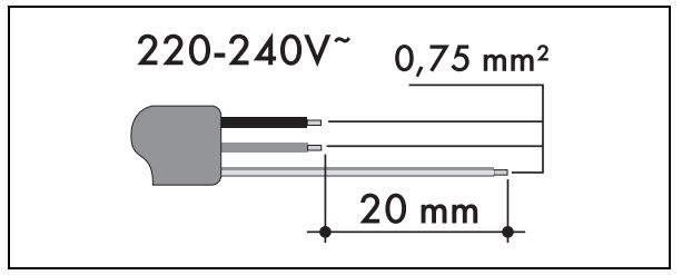 Check the mains characteristics against the data indicated on the plate. The identification plate bearing the technical data, serial number and brand name is visibly positioned on the appliance. Do not remove this plate for any reason. The appliance must be connected to ground using a wire that is at least 20 mm longer than the other wires.