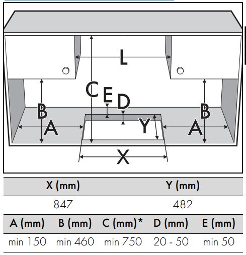 • If the piece of furniture does not have the required recess opening, either it will have to be cut or masonry work carried out by a competent technician.