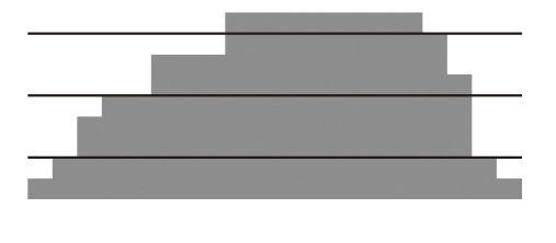 Twenty columns of boxes (10xhigh) indicate each segment of a workout. The boxes only show an approximate level (resistance) of effort. They do not necessarily indicate a specific value – only an approximate proportion to compare levels of intensity.