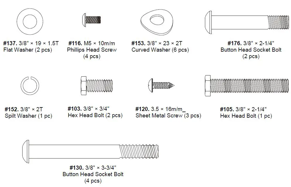 103 | 3/8″ × 3/4″_Hex Head Bolt | 2 |